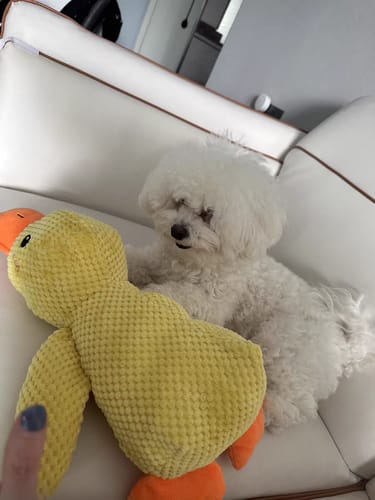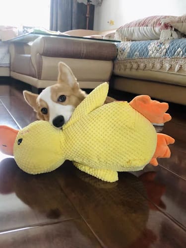 Notre chiot a réussi à détruire tous ses jouets en peluche. Il fait ses dents et les mord jusqu'à ce que les oreilles, les pieds, les nez, etc. soient arrachés. Ce jouet a survécu à tous les autres. Pour une raison ou une autre, même si notre chiot le mâche, il est resté tel qu'il a été reçu, complètement intact... le bec, les pieds et les nageoires !